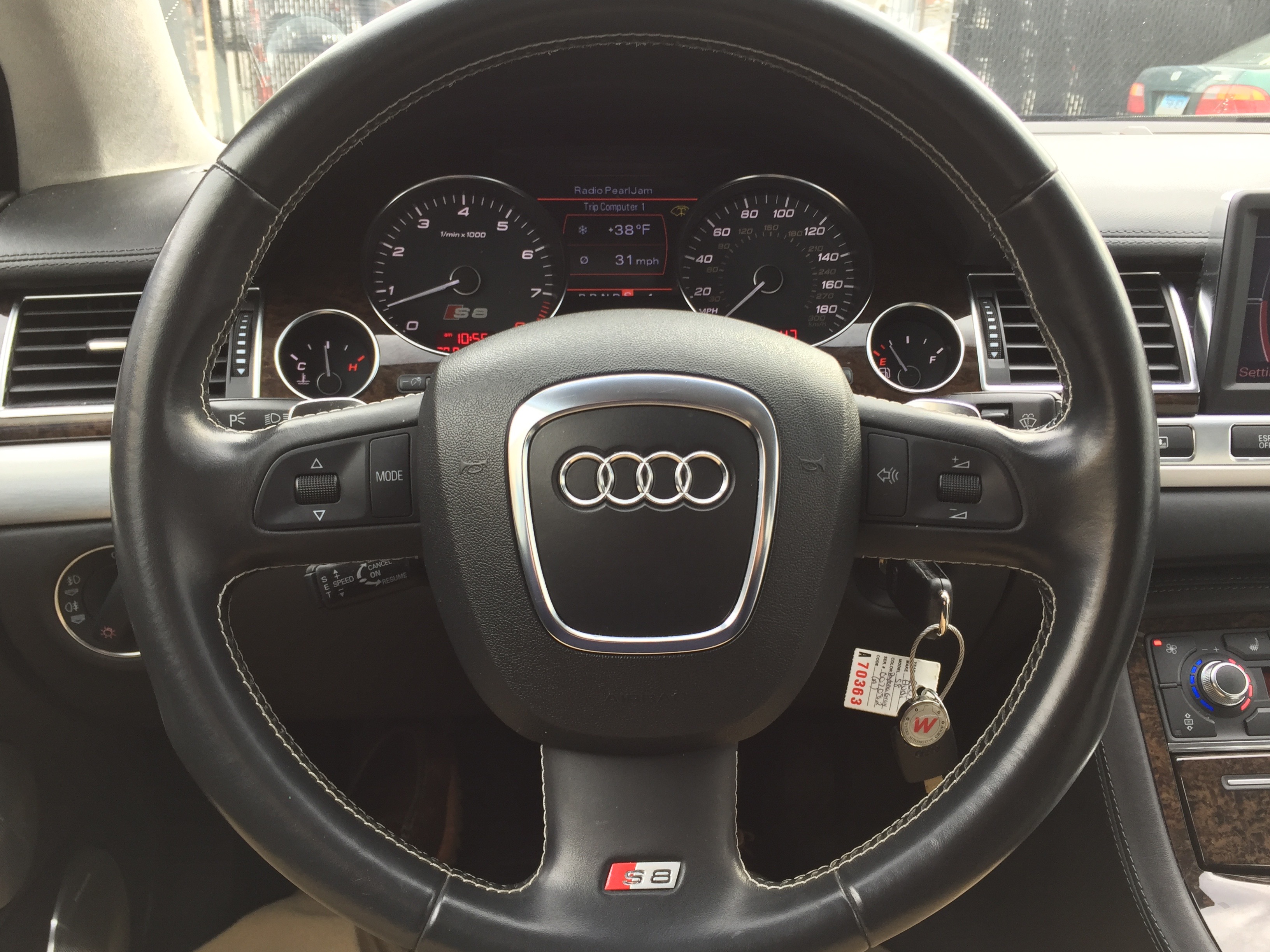 Gray, 49,600 mi, ABS, Air, Alarm, All Power, Auto, Cruise, CD, Fully Loaded, Leath Int, P Moonroof, PB, PS, Tilt, Traction Control, PW, Alloy Wheels, Air Bags, P Seats, 10 Cyl, nav, satellite radio, heated seats, AWD, turbo, bose stereo, With a V10 Lamborghini derived eng is sure to please. 5.2L V10 produces 450 hp & 398 lb-ft of torque. A little less hp but a bit more torque then the Gallardo engine. Now add in the legendary Quatro AWD systems of Audi and seating for 5 & sure to have your dream car all wrapped up in one, the Audi S8 is that car. It also has a clean Carfax.
